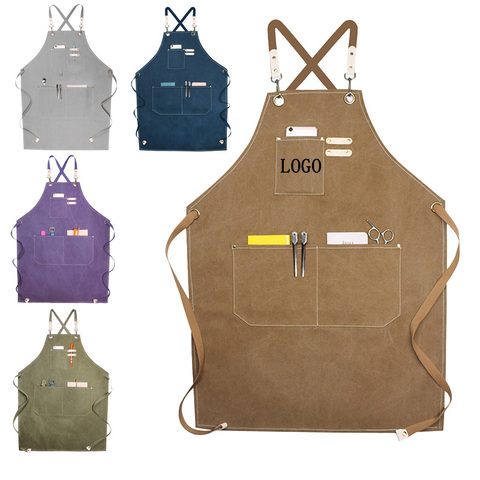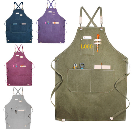 לוגו באיכות גבוהה מותאם אישית לסביבה קנבס בישול סינר גנן סינר גינון עם כיסים קפה סלון ברביקיו שף אפייה