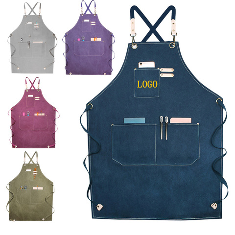 הסיטונאי הלוגו מותאם אישית צלב גב כיסים גדולים מתכווננת בד כותנה סינרים לגברים ולנשים סלון ורוד